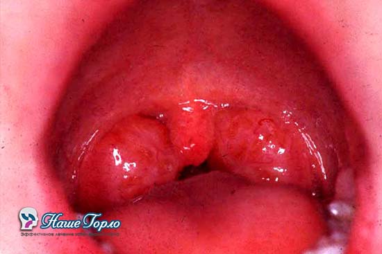 - Отек и покраснение миндалин в ответ на действие причинного аллергена.