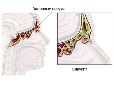 Инфекционное поражение пазух называется гайморитом. Гайморит — это воспаление ткани, которая покрывает носовые пазухи изнутри. В некоторых случаях гайморит выражается в блокировании пазух, вырабатывании избыточного количества слизи и вытеснении воздуха из носовых и лобных пазух. Такое заболевание всегда сопровождается болью и повышенным давлением внутри синусов. При отсутствии лечения или при неправильном лечении гайморит вызывает развитие бактериальной инфекции. Также он может принимать хроническую форму.