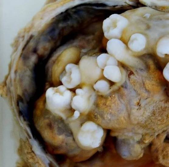 При удалении тератомы яичника обнаруживаются зубы, волосы и другие образования