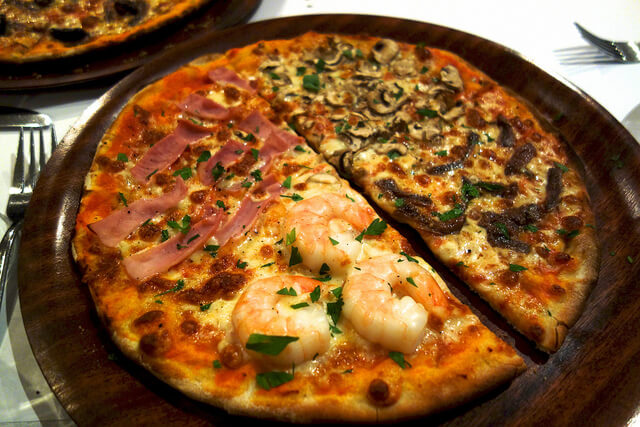 Необычайно популярная пицца, начинка которой практически целиком состоит из морепродуктов. Помимо них в пиццу добавляется томатная паста, оливки, чеснок, оливковое масло и зелень. С морепродуктами отлично сочетается лимон, поэтому нелишним будет добавить несколько капель свежевыжатого лимона к начинке.