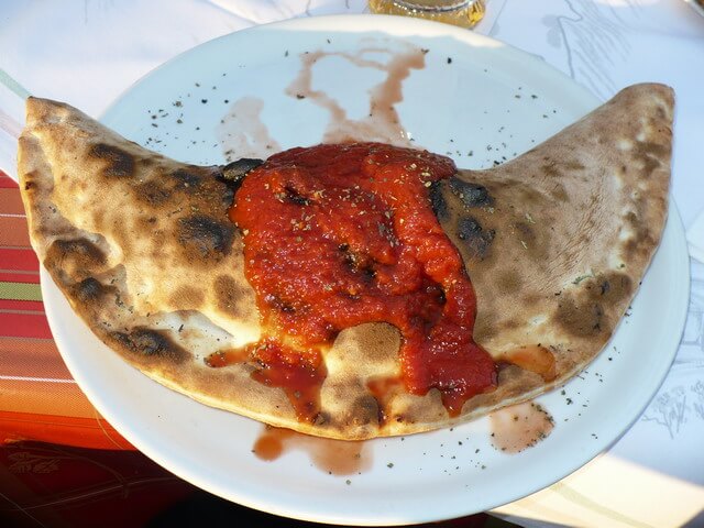 Эта пицца отличается от остальных тем, что ее запекают конвертом, т. е. складывают пополам. Очень часто ее используют в качестве сытной закуски. Приготовляют Кальцоне из сыров Рикотта и Пармезана, а также ветчины и зелени.