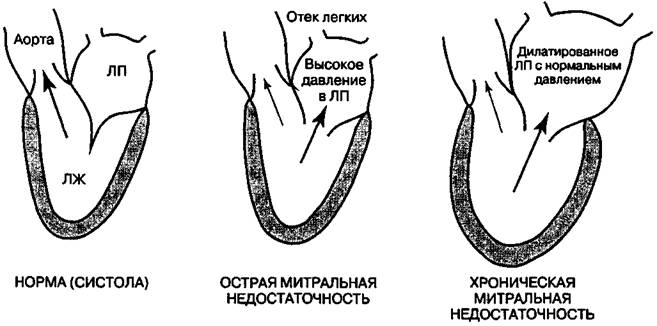При неплотном закрывании створок во время сокращений желудочка часть его содержимого выдавливается обратно в предсердие, образуя лишний объем и нагружая сердечную мышцу. Выброс крови в аорту долгое время остается нормальным, кровоснабжение других органов не страдает.
