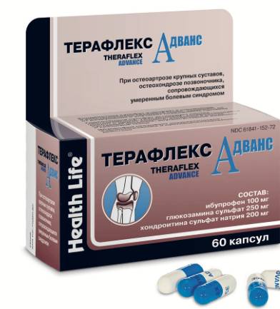 - Терафлекс Адванс кроме глюкозамина и хондроитина содержит в своем составе ибупрофен. Такой компонент оказывает противовоспалительный и обезболивающий эффект. Он наиболее безопасен по сравнению с иными нестероидными противовоспалительными лекарственными средствами. Дозировка данной формы препарата по сравнению с обычным Терафлекс, снижается ровно в два раза. Желаемого эффекта можно добиться за наиболее короткий срок. Цена Адванс 30 капсул составляет 675-710 руб. Цена Адванс 60 капсул равна 1000-1370 руб. Цена Адванс 100 штук составляет 1890-2200 руб.