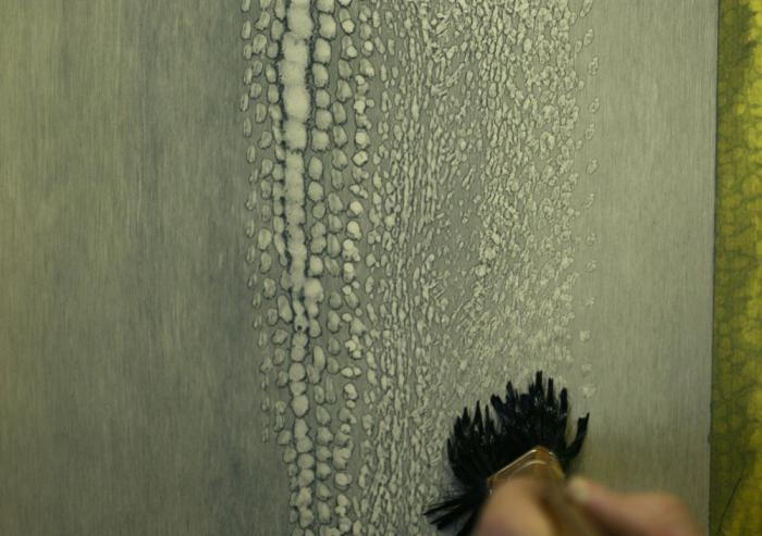Как ни странно, этот прием возник в результате изучения неприятного явления, возникавшего тогда, когда на кузове автомобилей не очень квалифицированные маляры вместо гладкой поверхности получали мелкие досадные неровности. Эти неприятные случаи брака были тщательно проанализированы, и выявлены условия, при которых возникает «шагрень». Фото увеличенных микротрещин прояснили картину: благодаря им стало понятно, что нарушение поверхностной структуры возникает из-за неравномерного высыхания краски. Что же, то, что плохо для поверхности автомобиля, может быть очень красивым примененительно к стене.